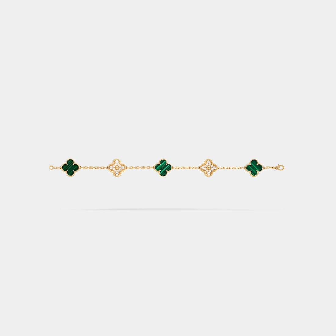 Alhambra Gold Motifs Bracelet Diamond Malachite