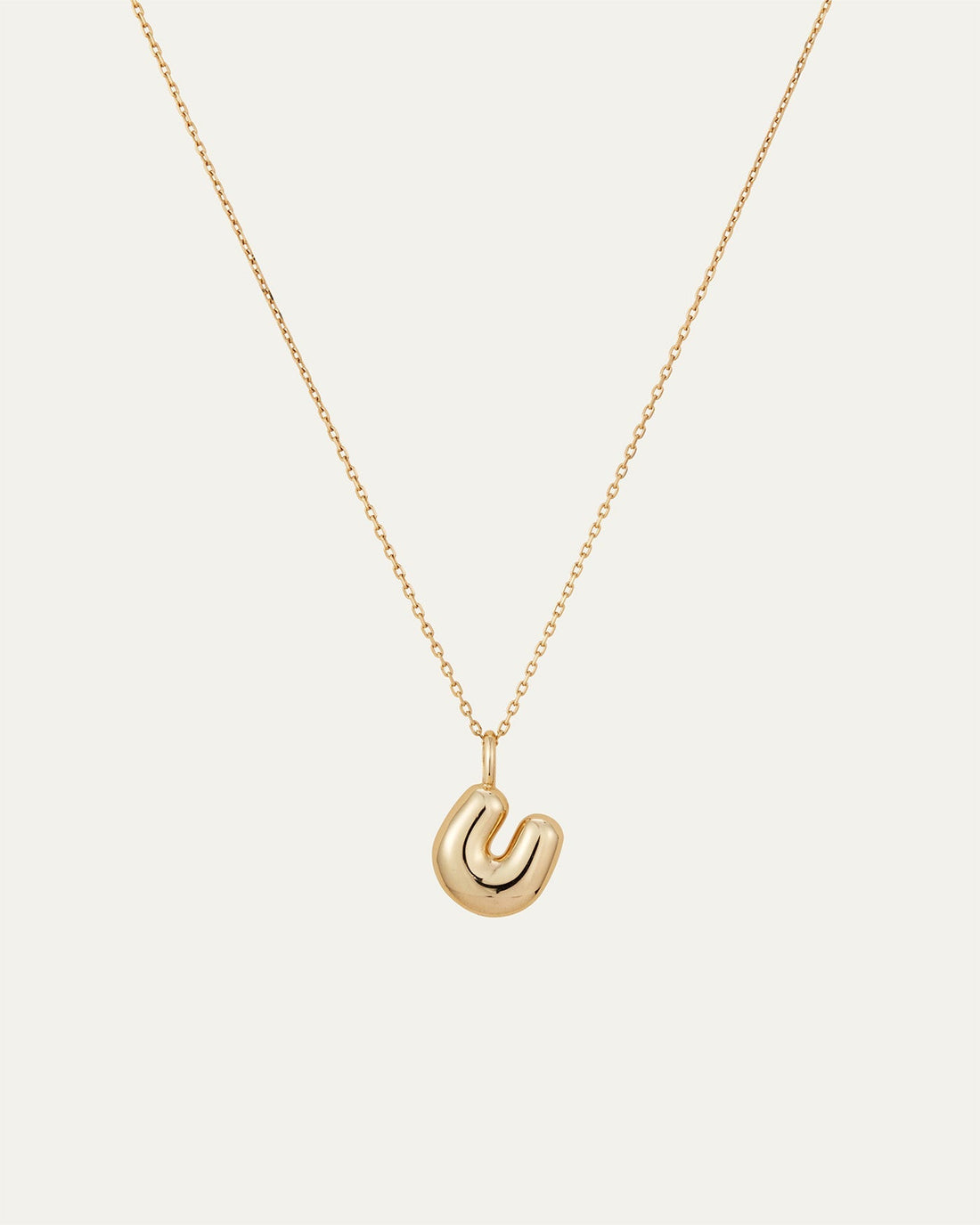 A small, 14K gold removeable pendant glides along a 14K gold, diamond cut cable chain....