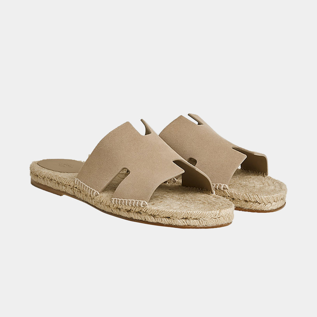 Espadrille in suede goatskin with rope sole and "H" cut-out.This style offers a casual seaside...