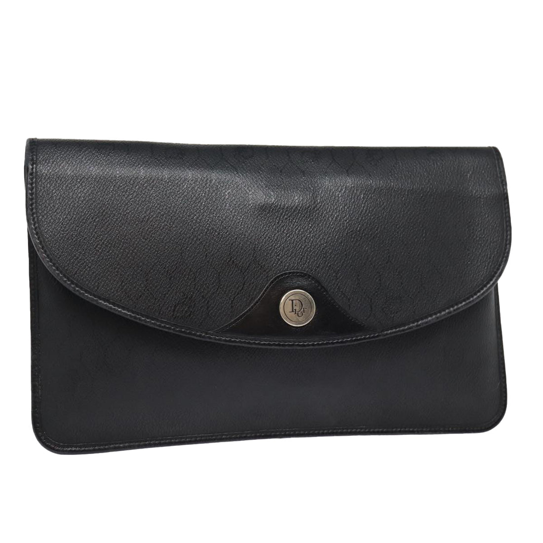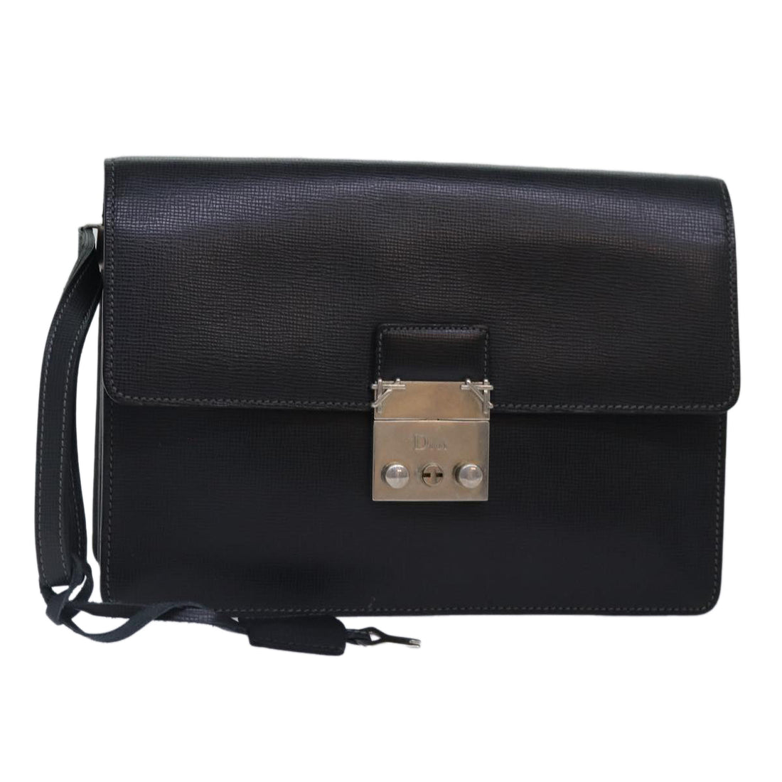 CHRISTIAN DIOR Clutch Bag Leather Black Silver Auth bs17656