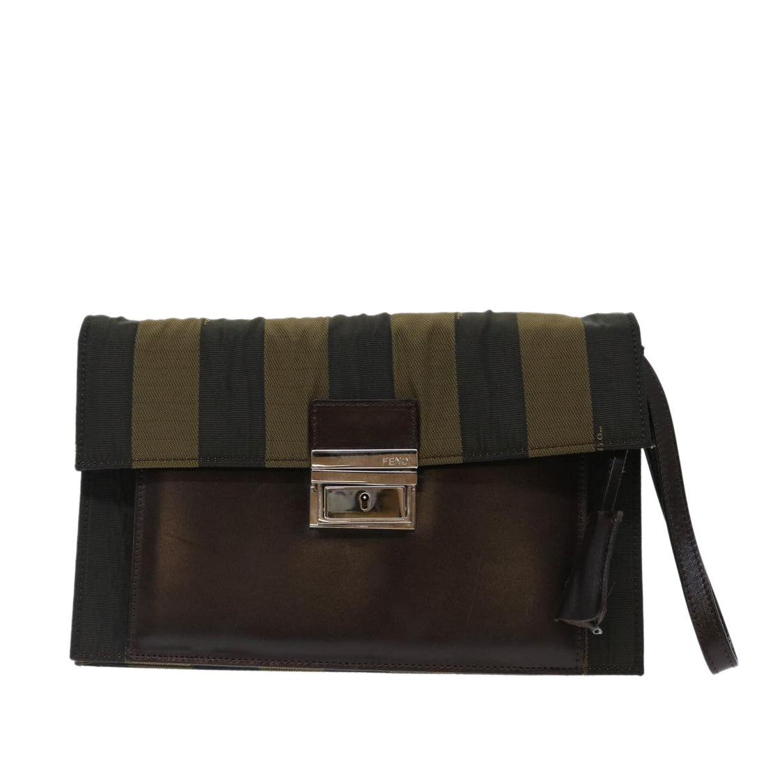 FENDI Pecan Canvas Clutch Bag Black Auth bs12935