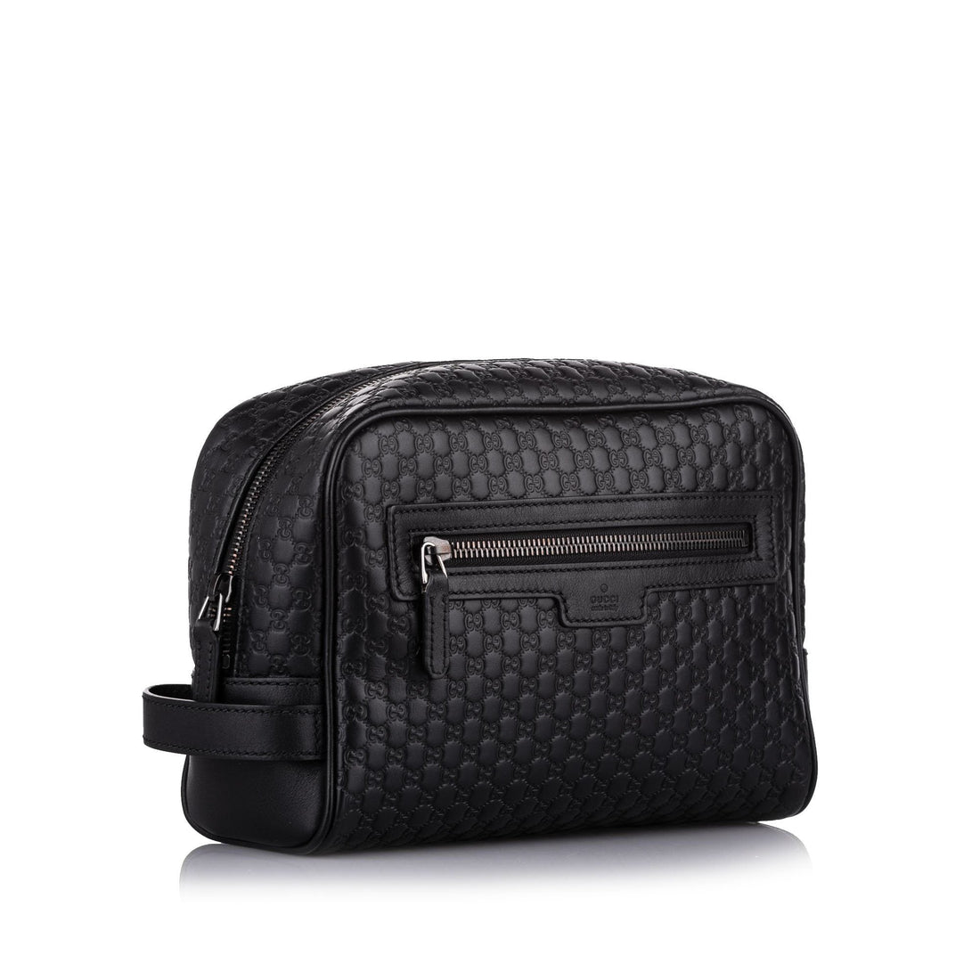 Gucci Sport Black Leather Cosmetic Case Pouch Clutch Bag 475316