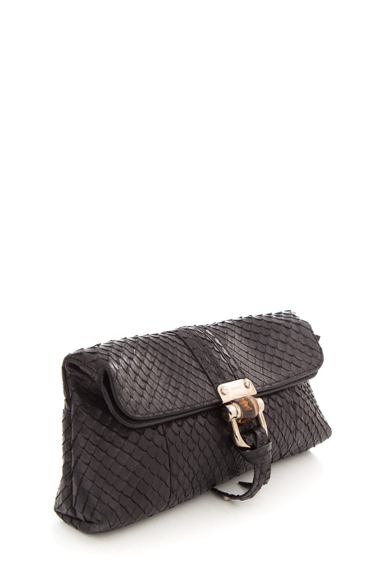 Gucci Black Python Clutch with Bamboo Detail at Hardware. This item is in very good...