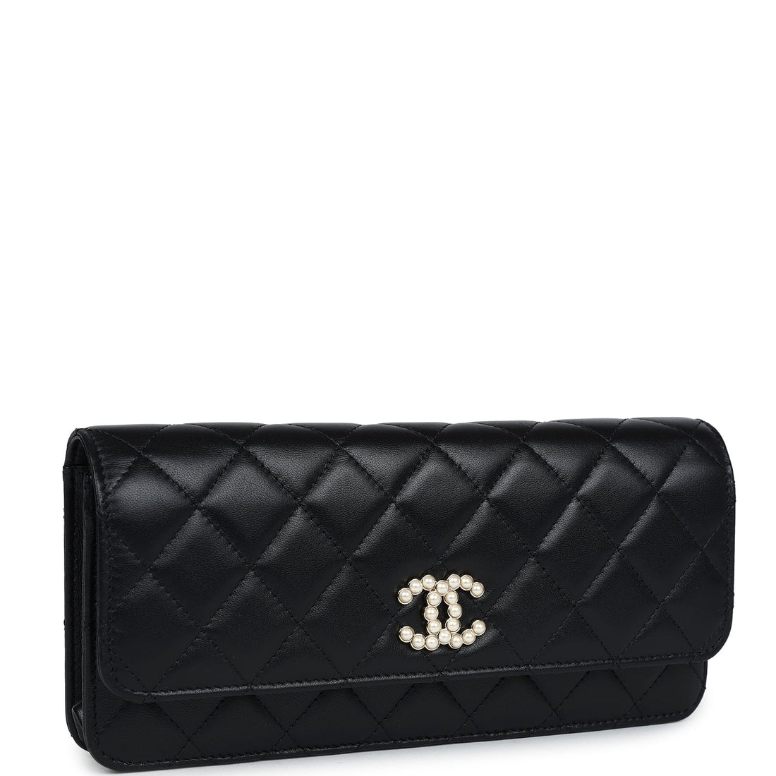 Chanel Small Pearl Clutch with Chain Black Lambskin Gold Hardware