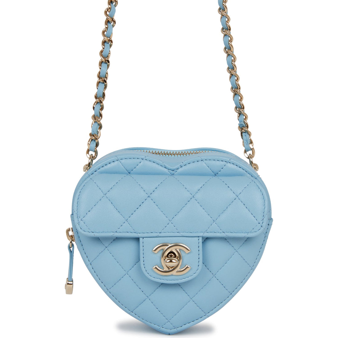 Chanel CC In Love Heart Clutch with Chain Blue Lambskin Light Gold Hardware