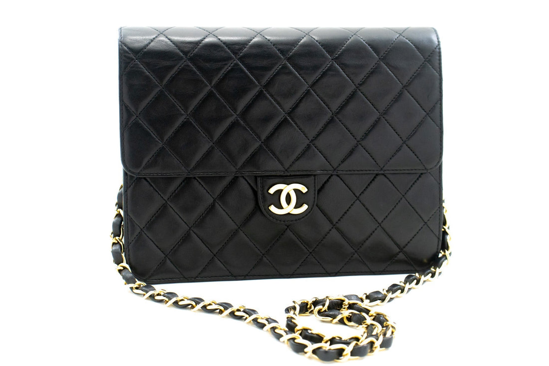 An CHANEL Small Chain Shoulder Bag Clutch Black Quilted Flap made of black Lambskin. The...