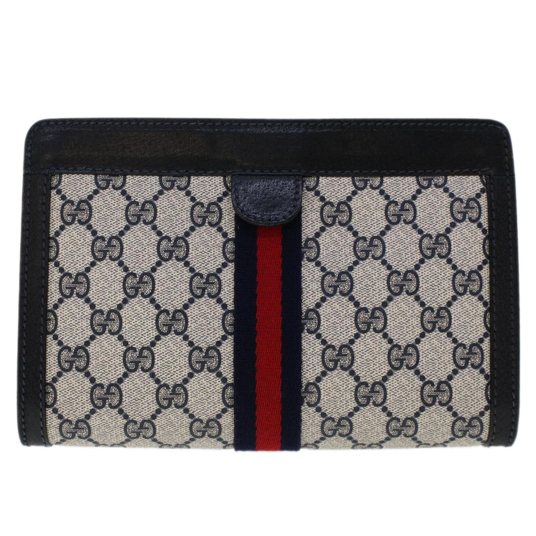 GUCCI GG Canvas Sherry Line Clutch Bag PVC Leather Navy Red 49081BRAND : GUCCI Color...