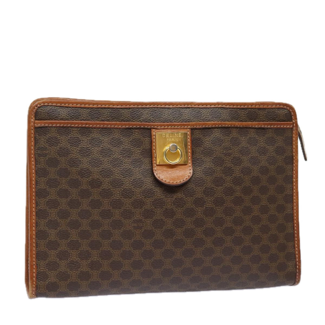 CELINE Macadam Canvas Clutch Bag PVC Leather Brown Auth 81831