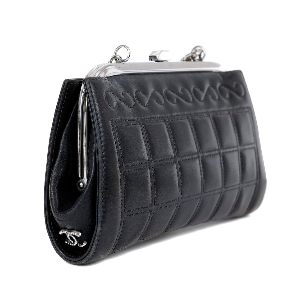 Chanel Navy Mademoiselle Stitch Kiss Lock Clutch