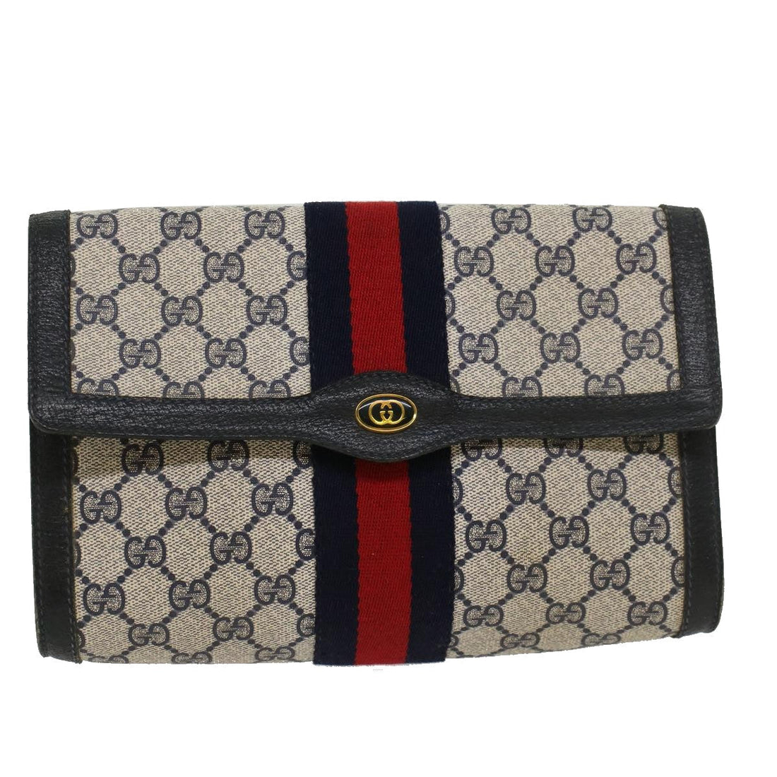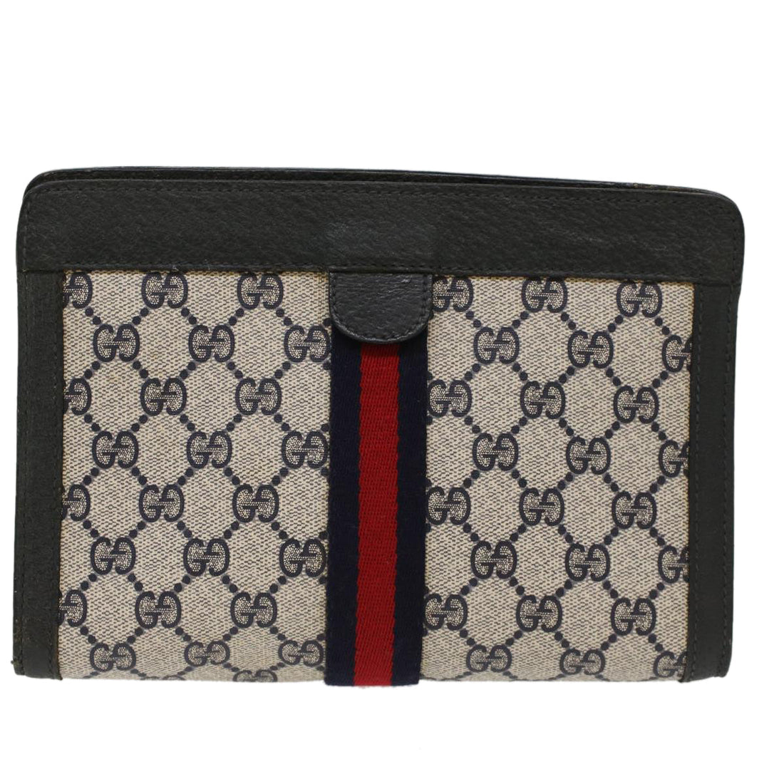 GUCCI GG Canvas Sherry Line Clutch Bag PVC Leather Gray Red Navy th3819BRAND : GUCCI...