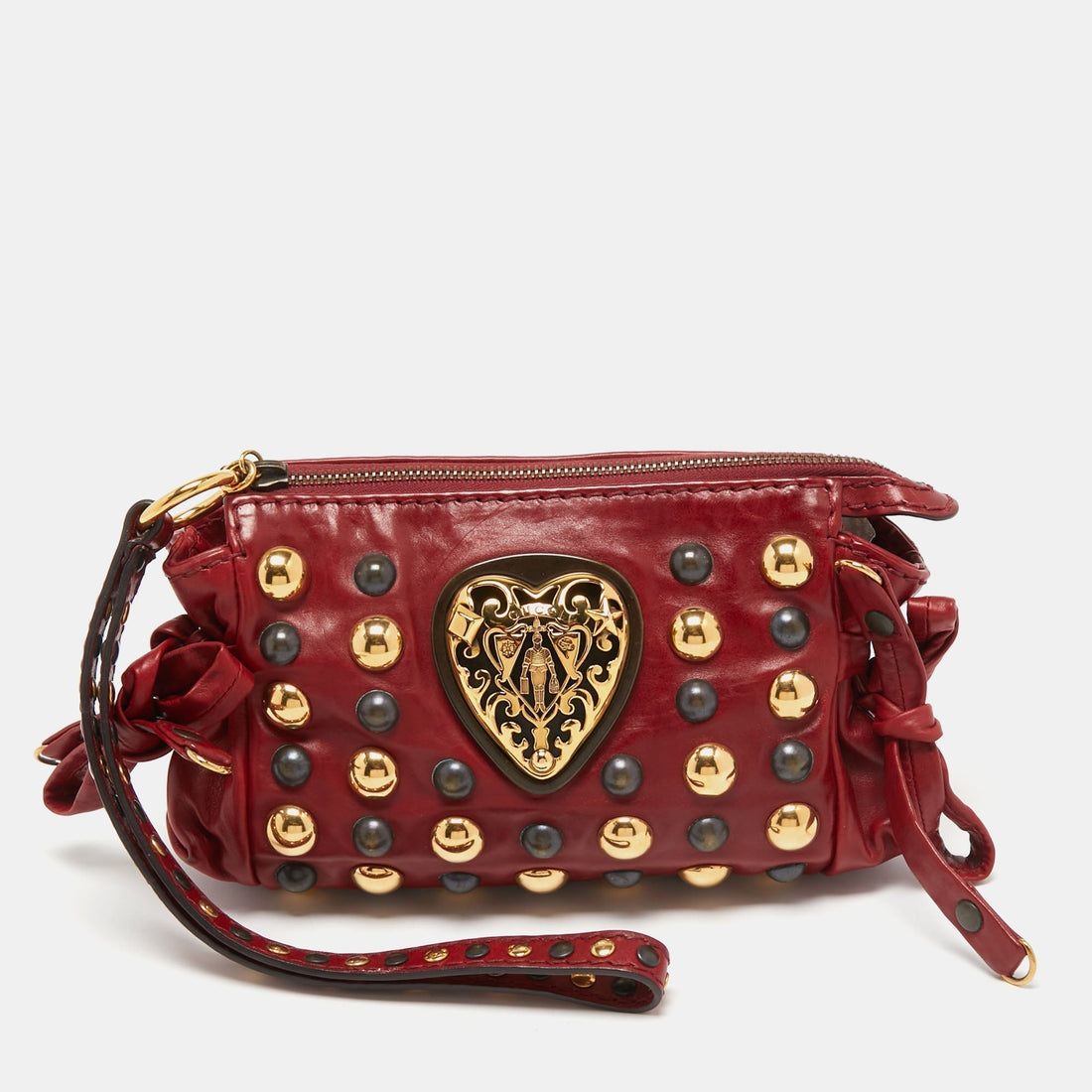 Gucci Red Leather Studded Babouska Hysteria ClutchThis Gucci clutch is built to suit your stylish...