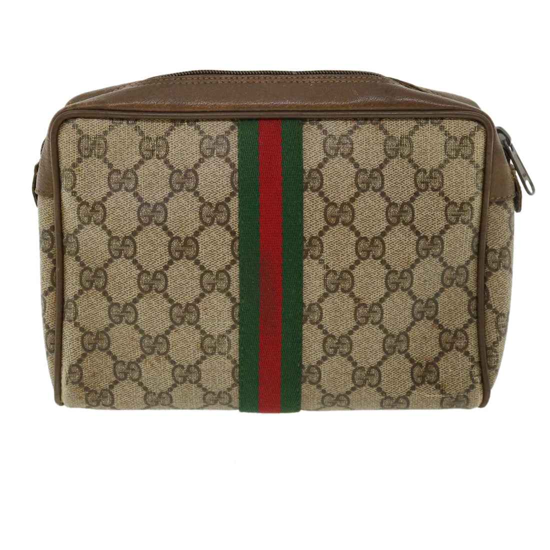 GUCCI Web Sherry Line GG Canvas Clutch Bag PVC Leather Beige Green 89 36428BRAND :...