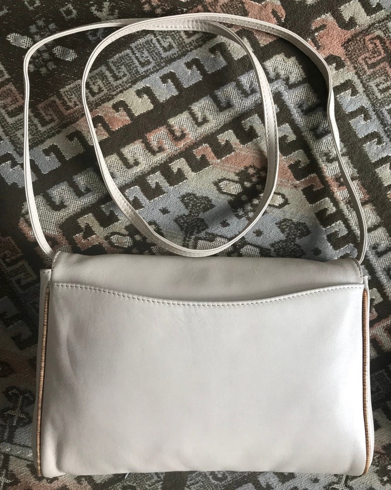 This is a vintage ivory beige and lizard-embossed brown leather combo shoulder bag that can...