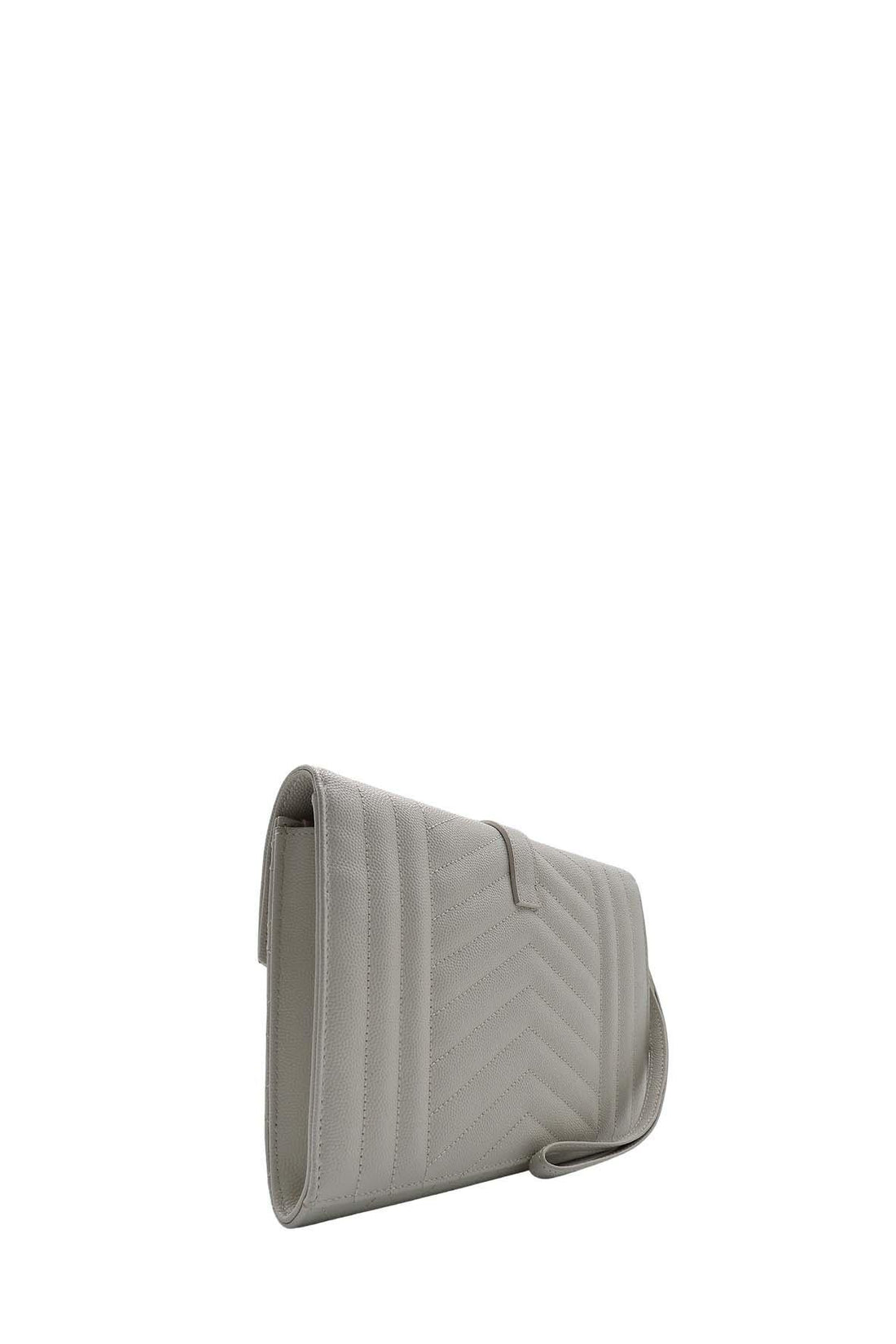 This is an SAINT LAURENT Grain De Poudre Textured Mixed Matelasse Triquilt Monogram Clutch in...