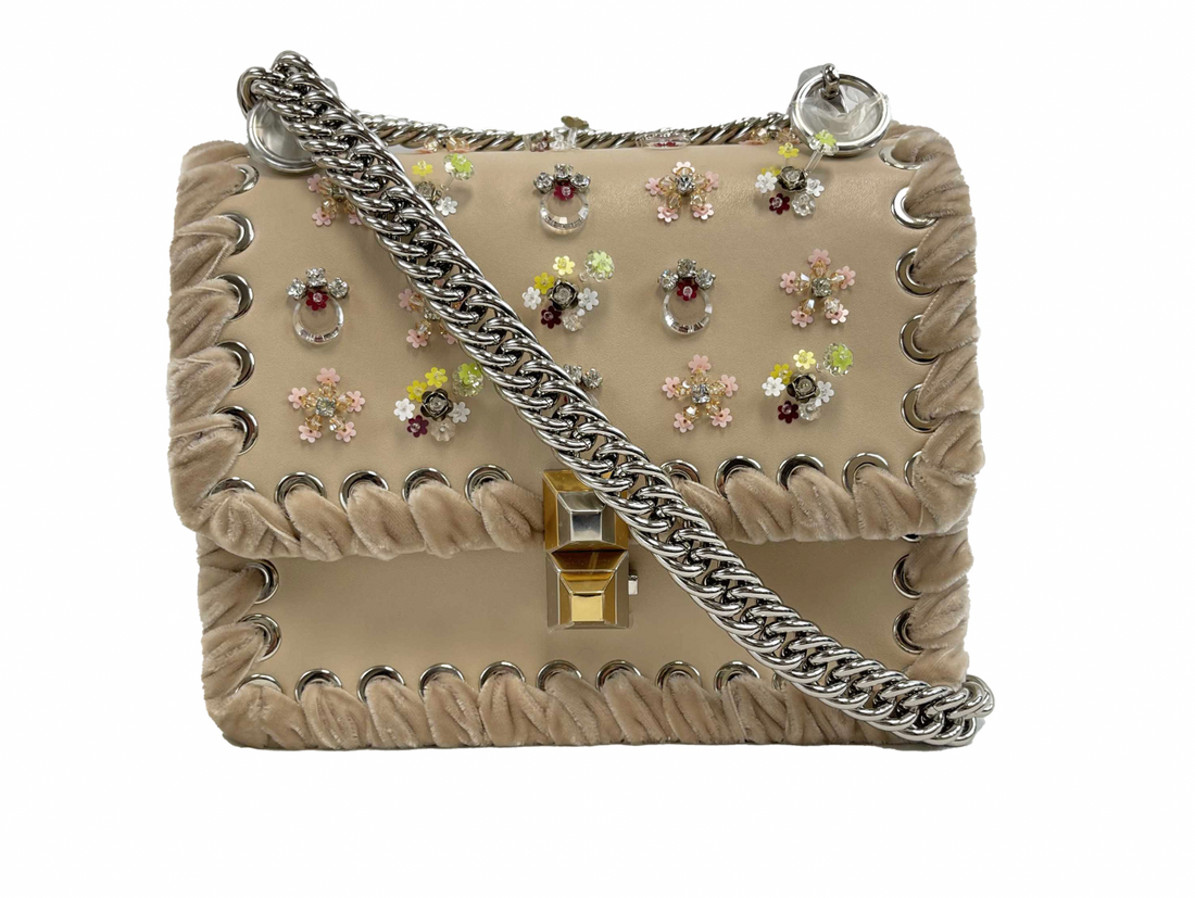 FENDI - NEW Kan I Bag Embellished Whipstitch Leather - Nude Beige Crossbody