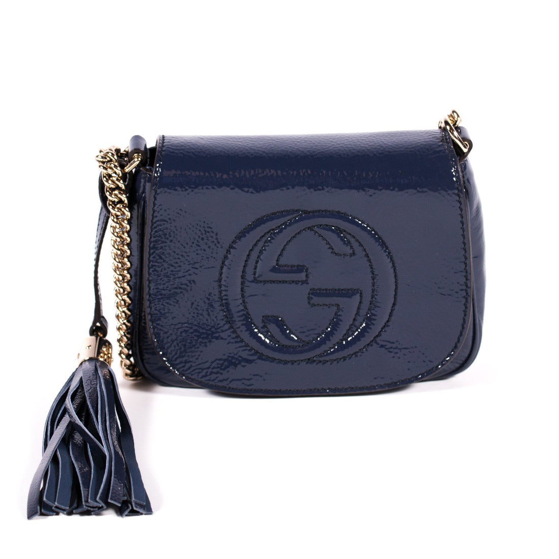 � Description: Gucci�Soho Chain Crossbody Details: Navy Blue Patent Leather / Gold-Tone Hardware / Single...