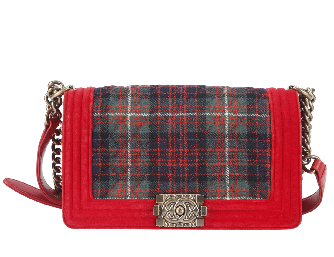 BRAND: CHANELMODEL: LEBOY TWEED (1817xxxx) COLOR: MULTICOLOR & GOLDSIZE: D 7.5CM x H 16CM x W 25CMMATERIAL: VELVET...