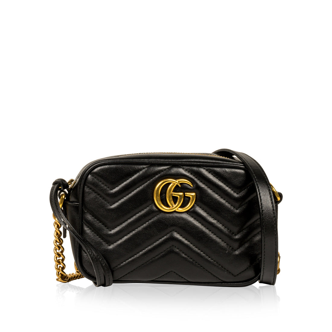 Carefully crafted from textured, matelass?? leather featuring Gucci's signature GG logo, the Marmont style has...