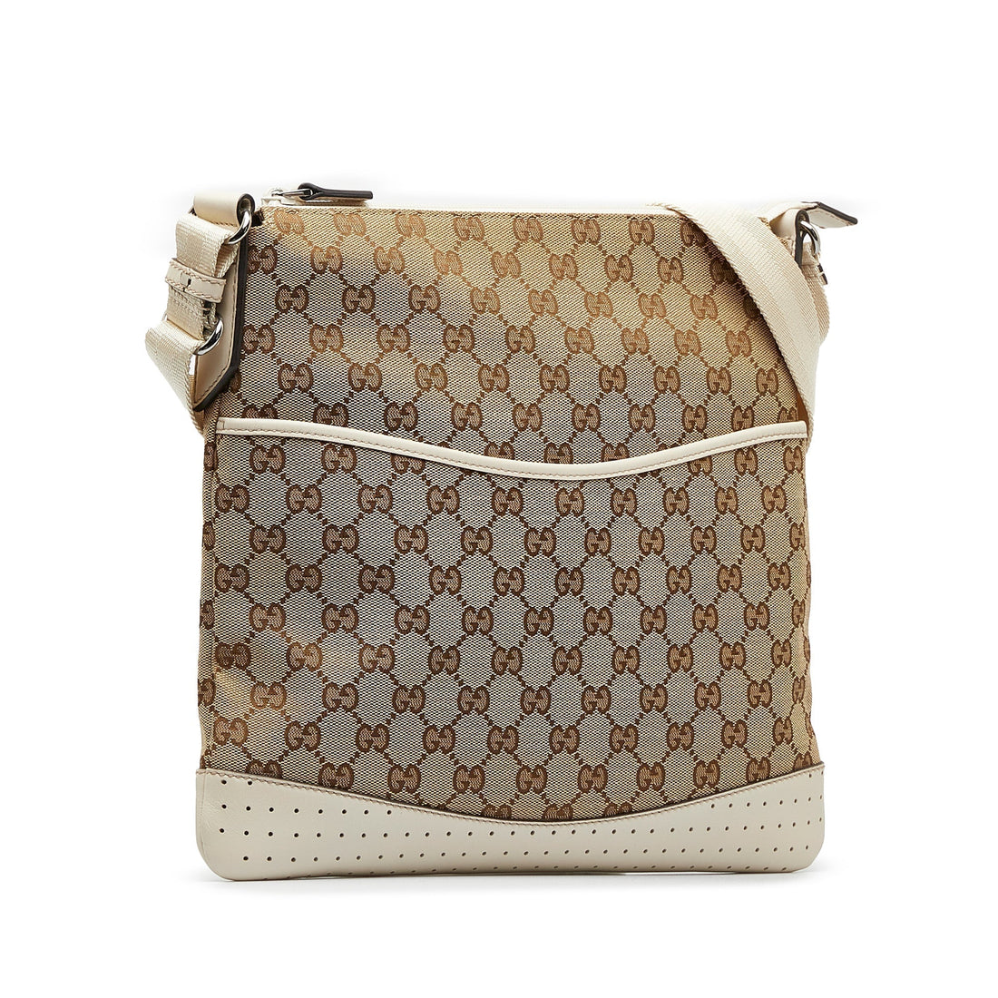 GUCCI GG Canvas Crossbody Crossbody BagThis crossbody bag features a canvas body with leather trim,...