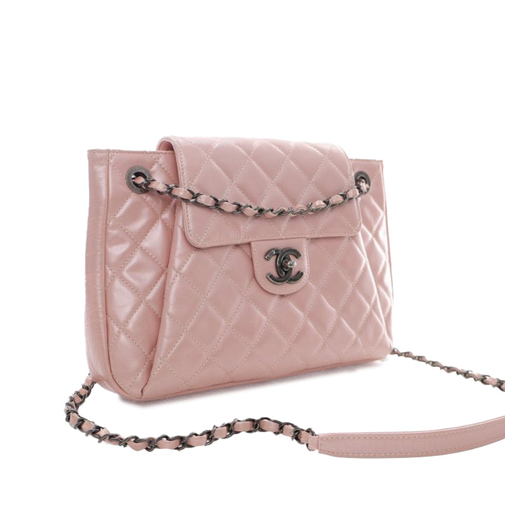 CHANEL Statement Flap Mini Quilted Chevron Crossbody Bag Pink
