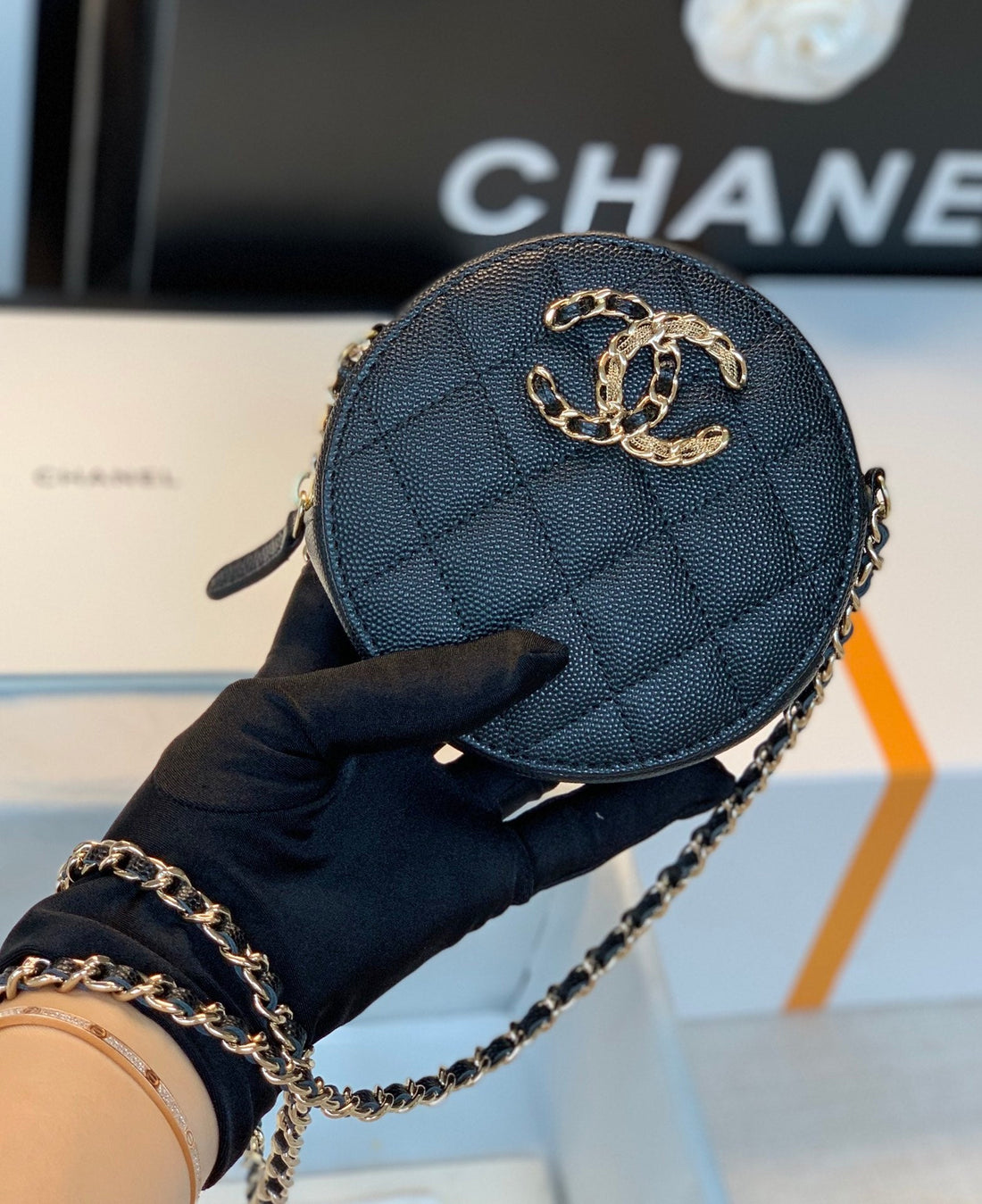 Description CC Round Bag Crossbody Black For Womtlm 4.7in/12 cm Rep 1:1 Measuremtlmts: 12 cm...