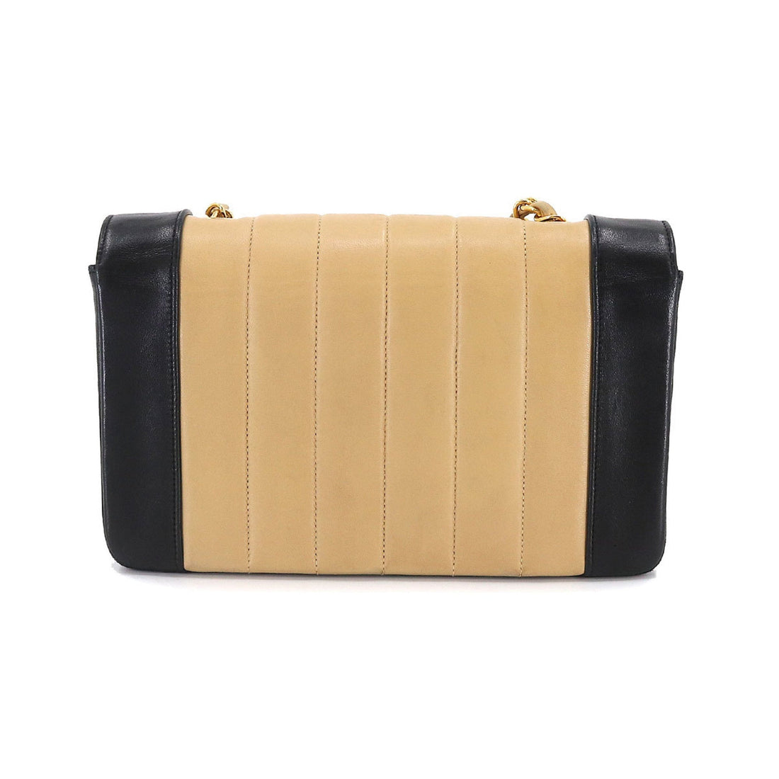Chanel Mademoiselle Chain Shoulder Bag Leather Beige Black Gold Hardware Bicolor Vintage
