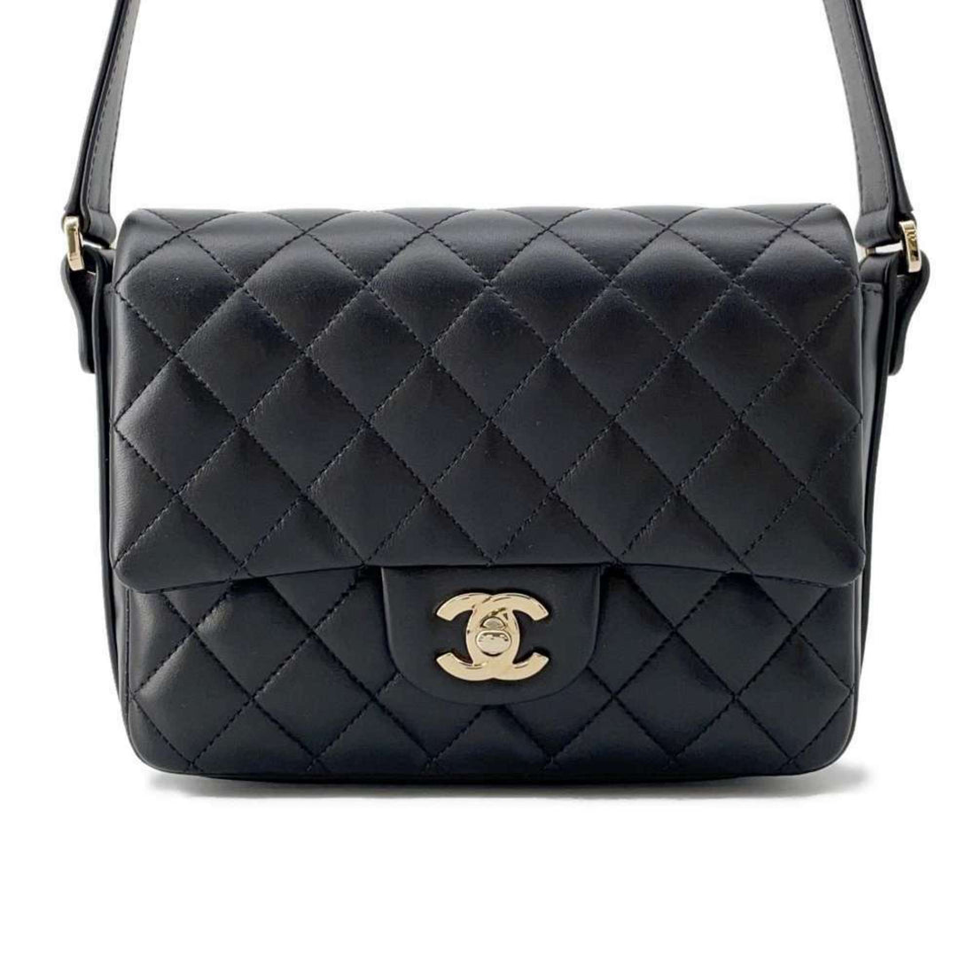 Chanel Shoulder Bag Deca Matelasse W Chain Lambskin Black Women's