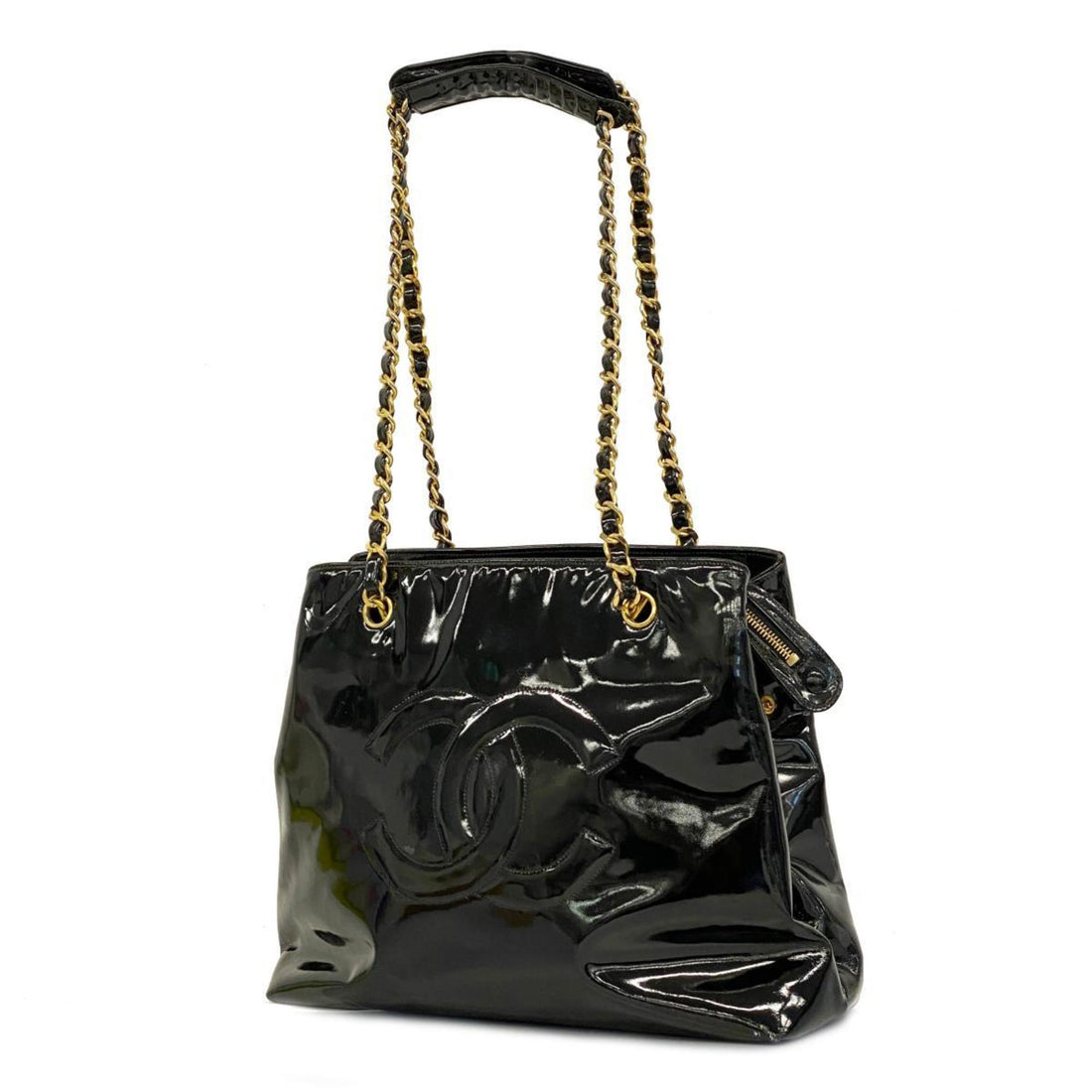Chanel Shoulder Bag Chain Patent Leather Black Women's