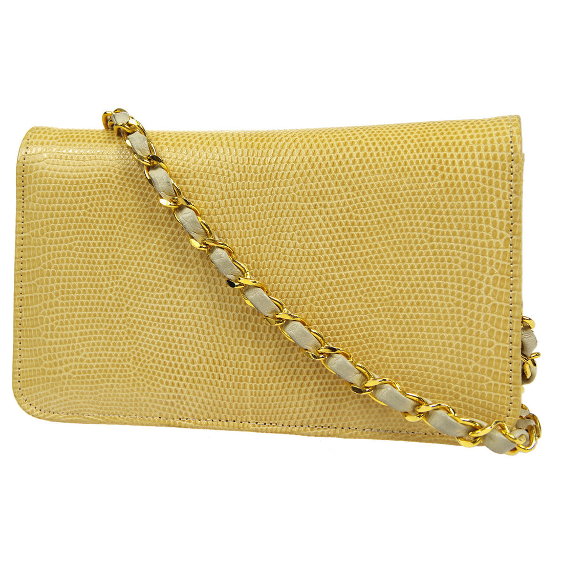 CHANEL * Full Flap Chain Shoulder Bag Beige Lizard