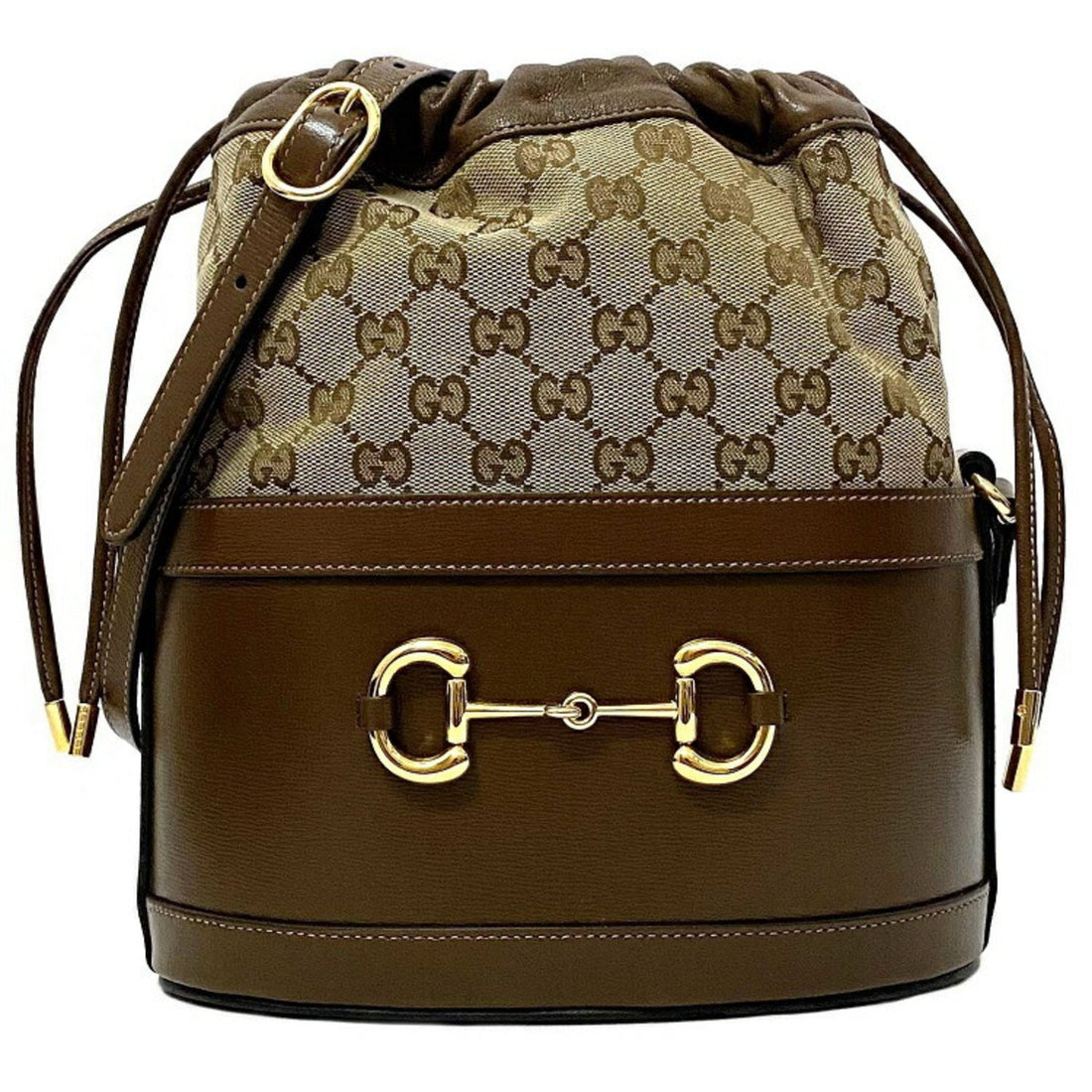 Gucci Bucket Bag Brown Beige Gold Horsebit 602118 1dbug 2363 Canvas Leather GUCCI GG Shoulder...