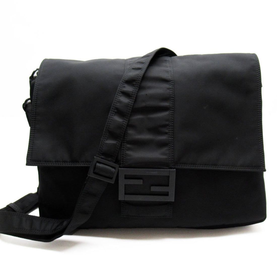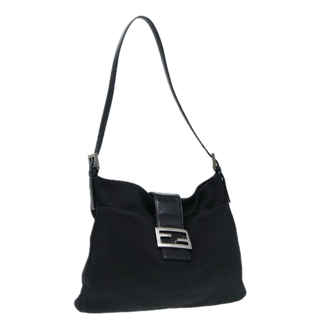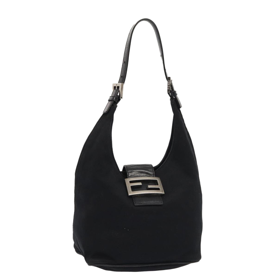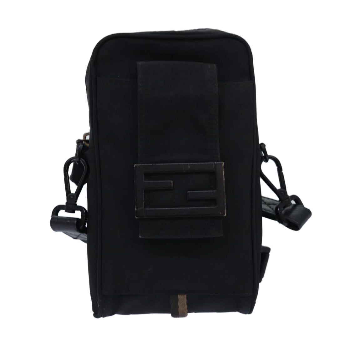 FENDI Shoulder Bag Nylon Black Silver Auth bs17206