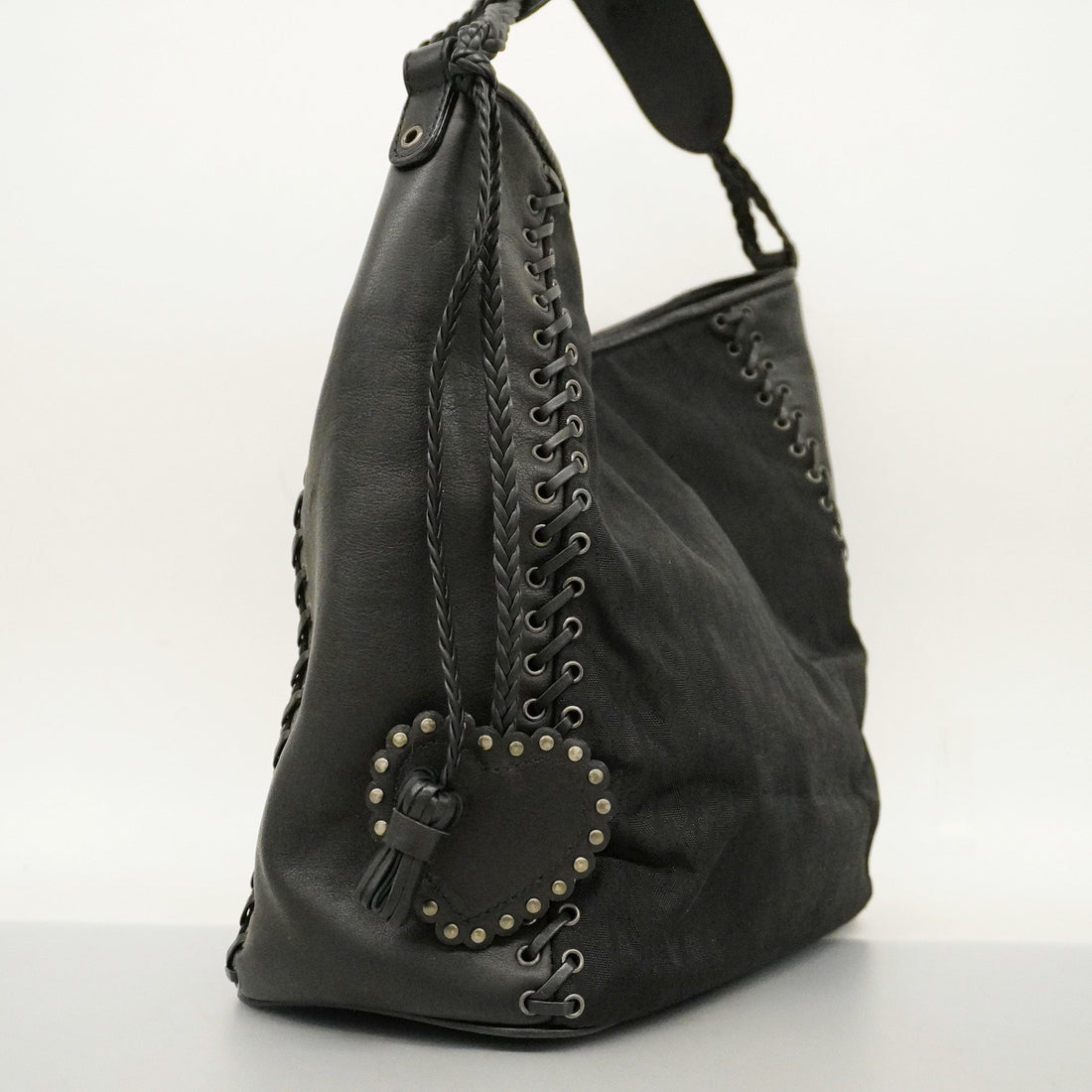 FENDI Zucca Canvas Shoulder Bag Black Silver Auth ep5578