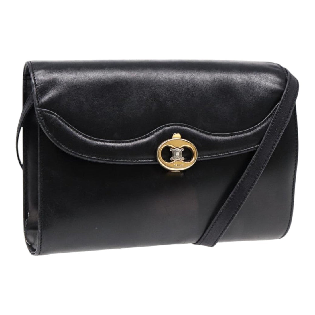 CELINE Shoulder Bag Leather Black Gold Auth 87745