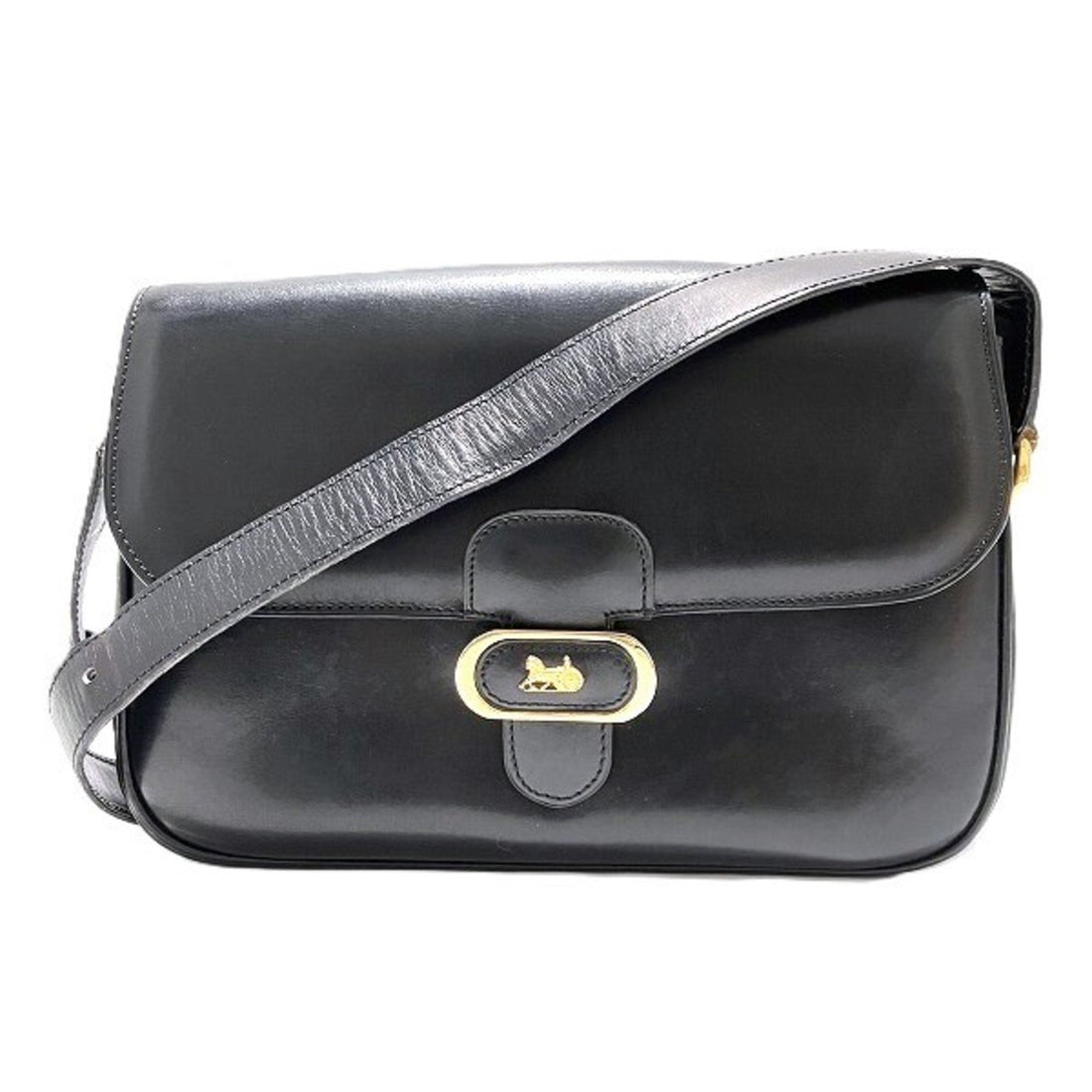 CELINE Horse Carriage Shoulder Bag Leather Black Gold Auth bs17653