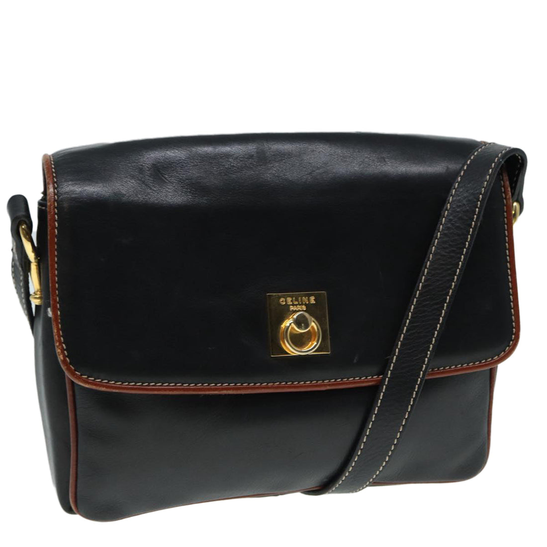 CELINE Shoulder Bag Leather Black Gold Auth bs17772