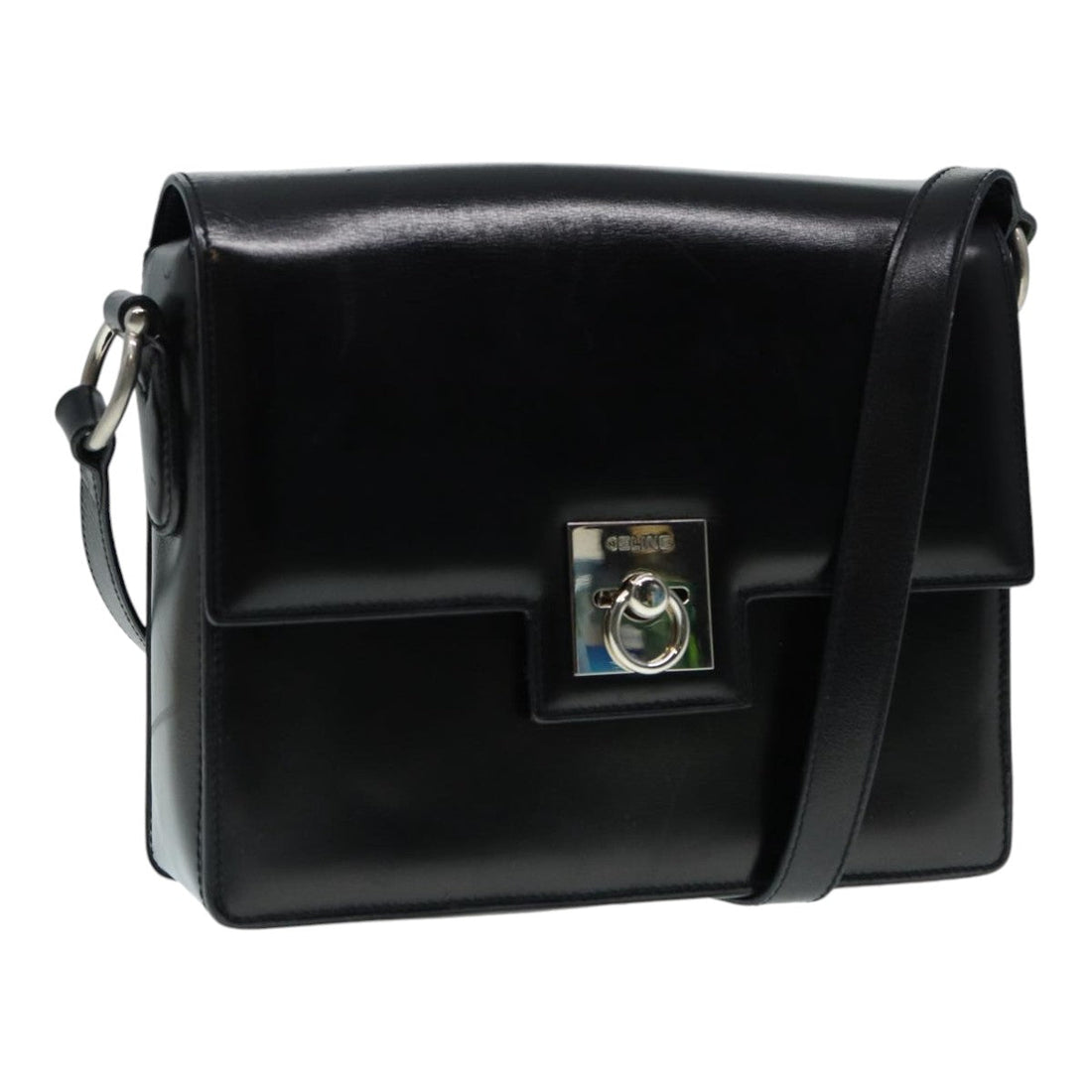 CELINE Shoulder Bag Leather Black Silver Auth fm3770