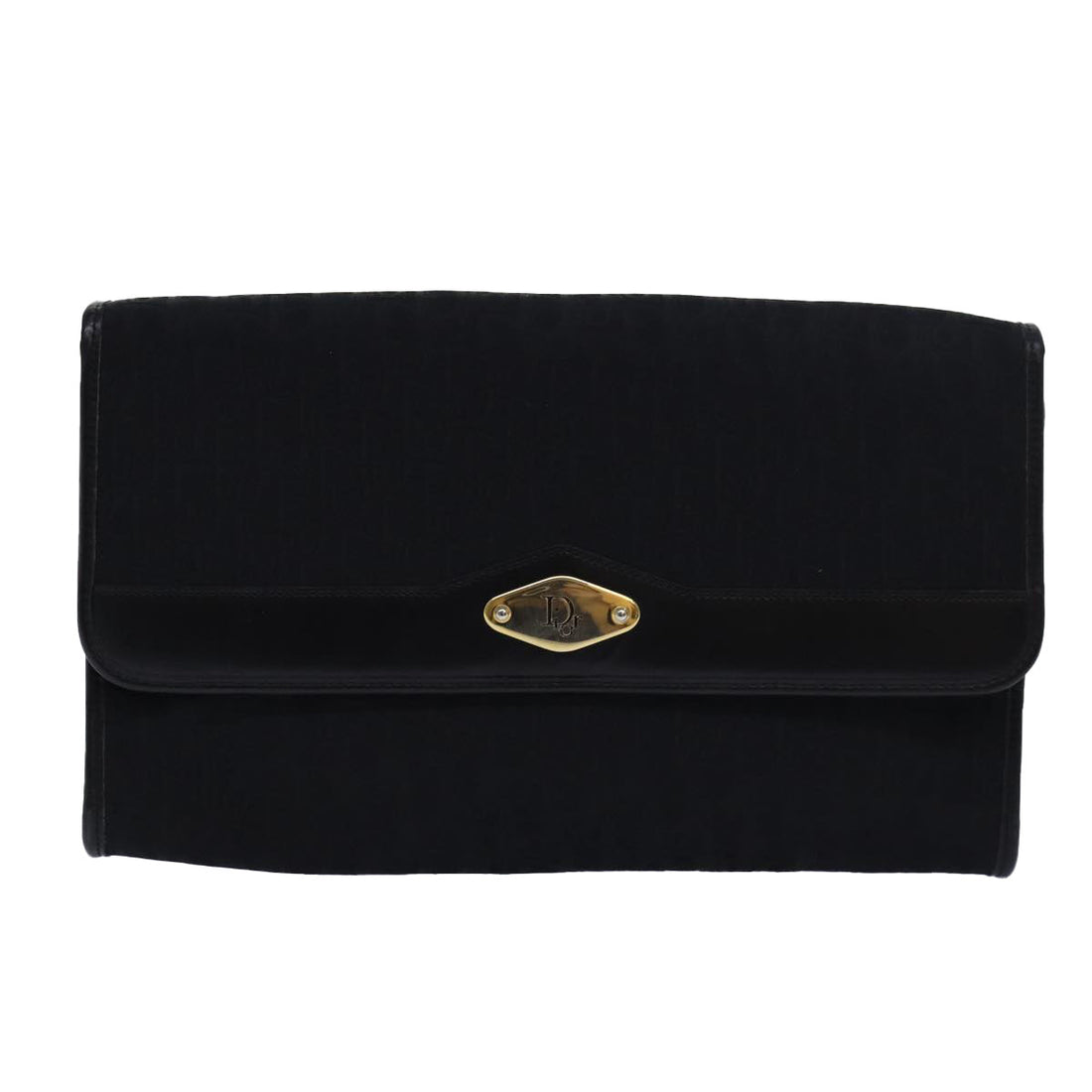 CHRISTIAN DIOR Trotter Canvas Shoulder Bag Leather Navy Black Auth am6449