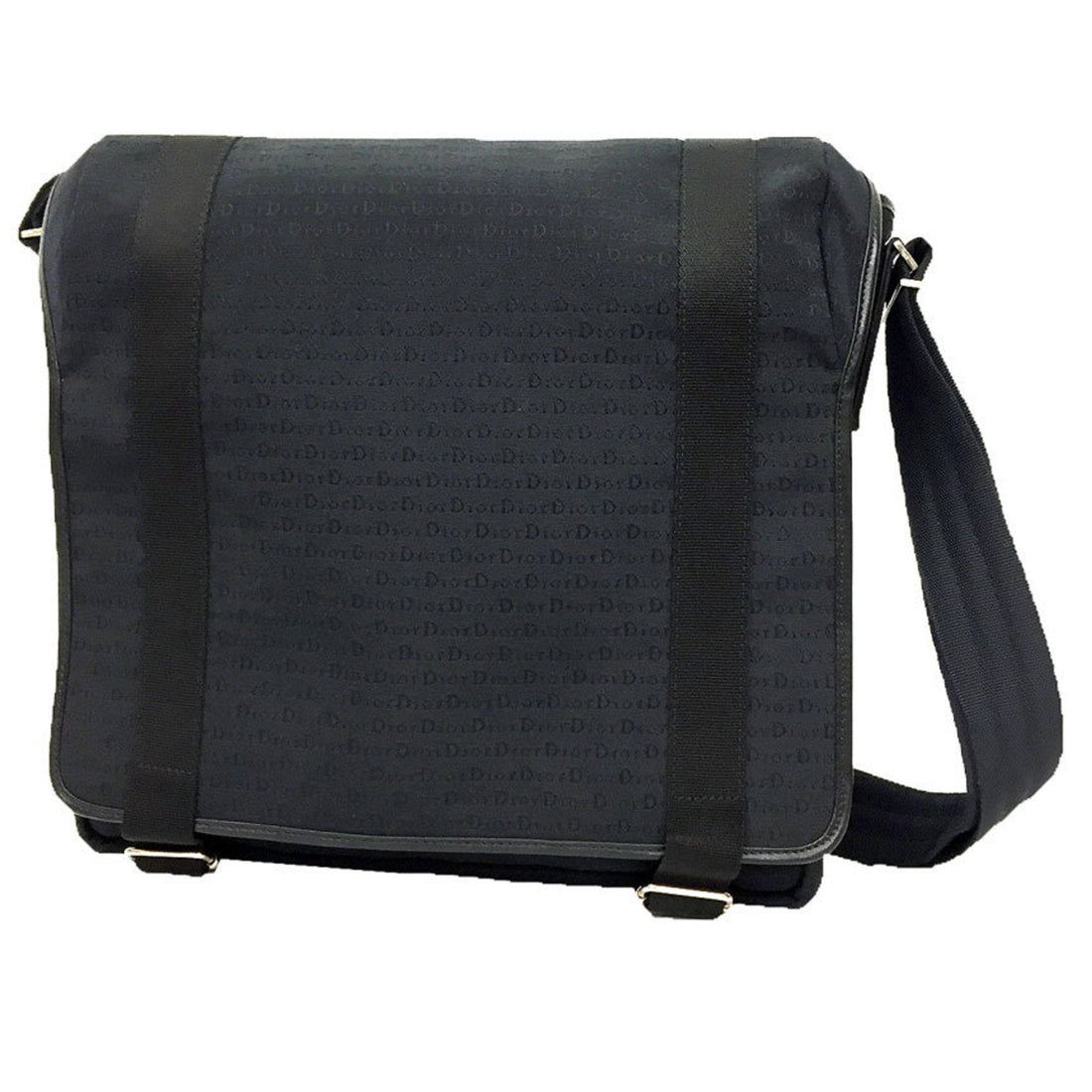 CHRISTIAN DIOR Trotter Canvas Shoulder Bag Leather Navy Black Auth am6449BRAND : Christian Dior Color...