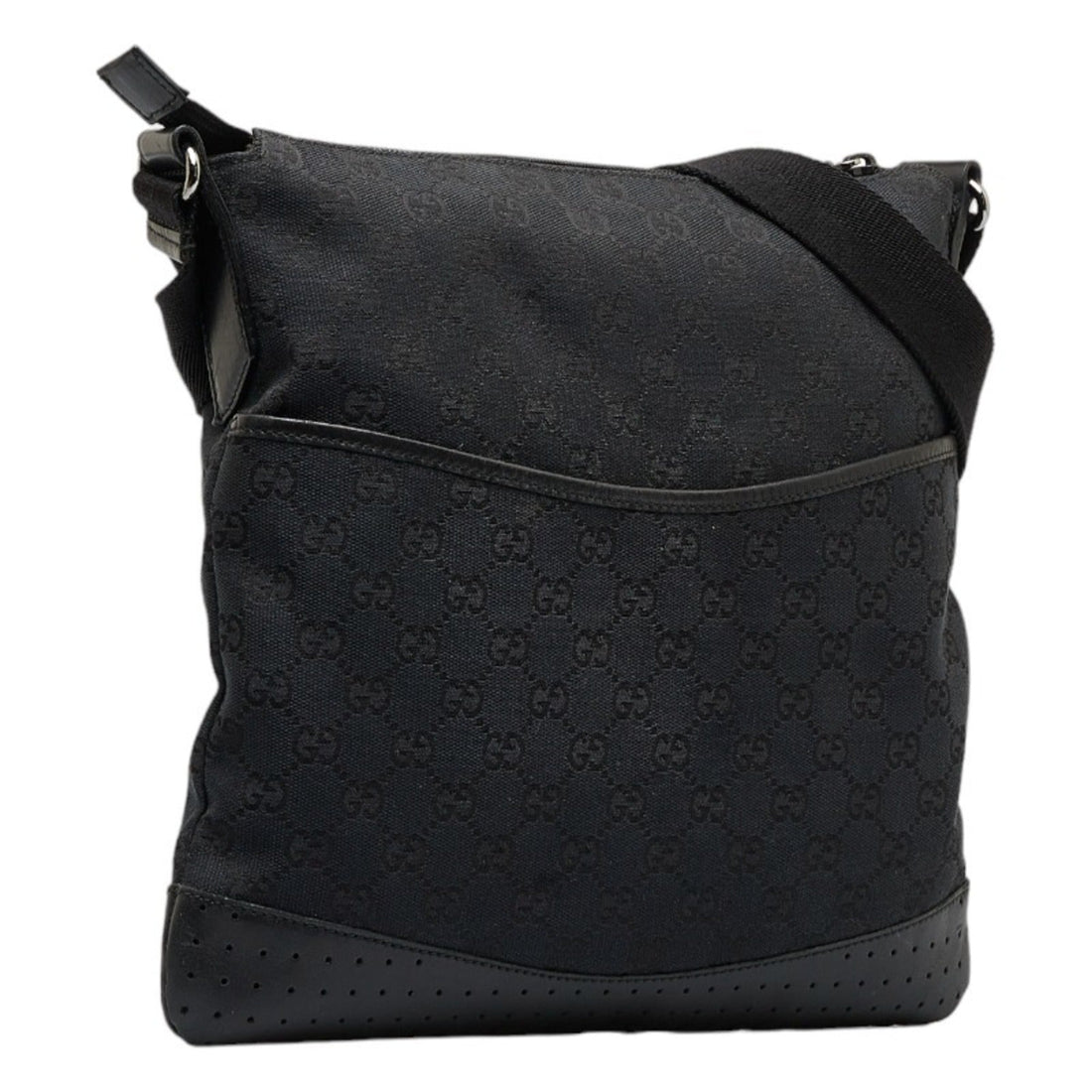 GUCCI GG Canvas Shoulder Bag 145857 Black Leather Women's