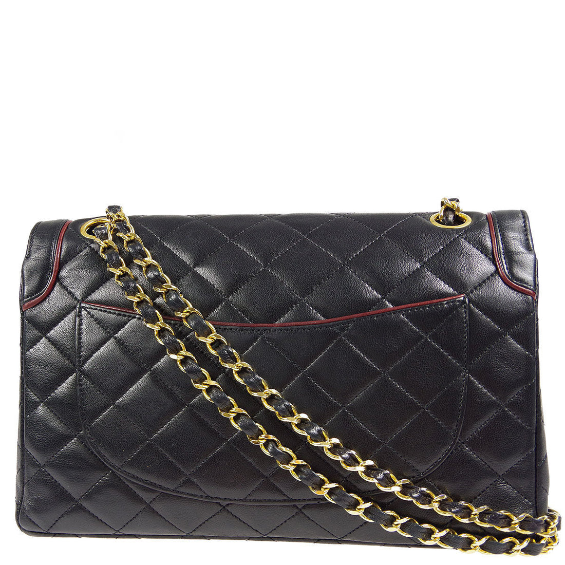 Chanel * Paris Limited Double Flap Medium Chain Shoulder Bag Black Bordeaux Lambskin