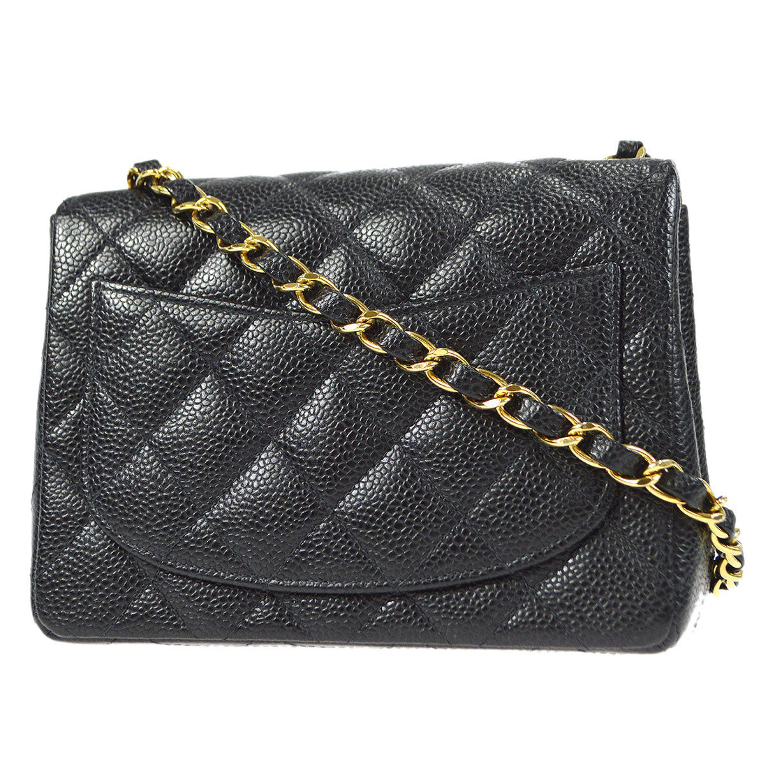 Chanel Classic Flap Mini Square Chain Shoulder Bag Black Caviar 18176