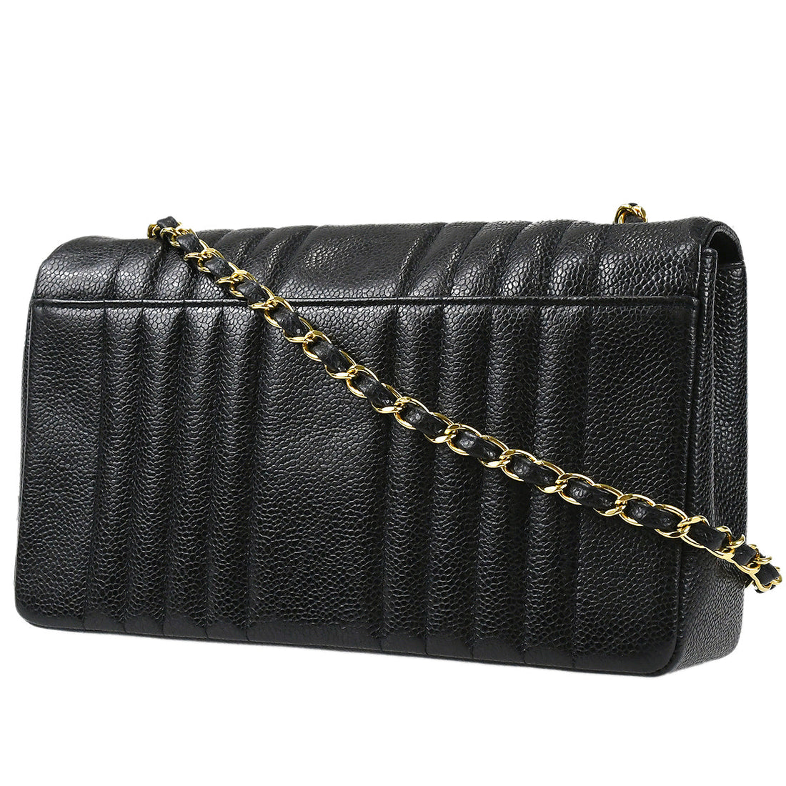Chanel Classic Flap Jumbo Double Chain Shoulder Bag Black Caviar 48505
