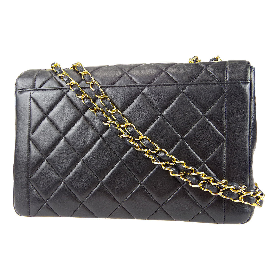 Chanel Classic Flap Double Chain Shoulder Bag Black Lambskin 68886