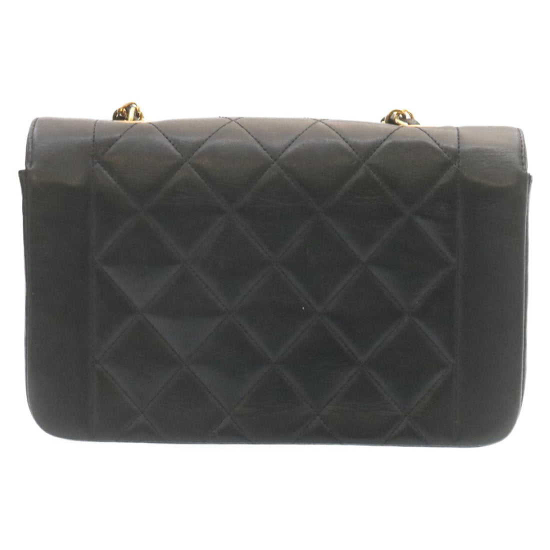 Chanel Chain Turn Lock Diana Matelasse Shoulder Bag Lamb Skin Black Auth 28470A