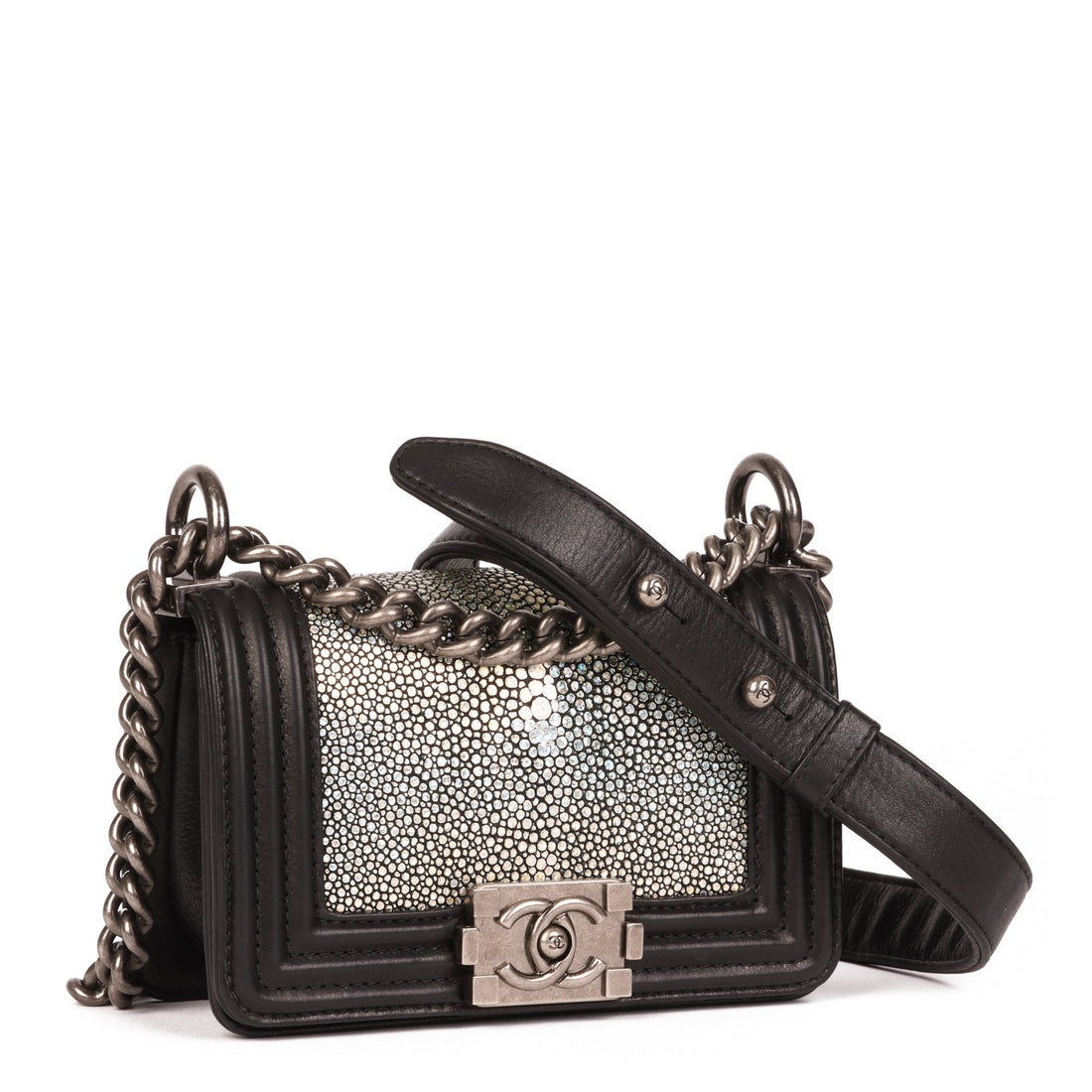 Chanel Black Lambskin & Hologram Galuchat Micro Le Boy Shoulder Bag