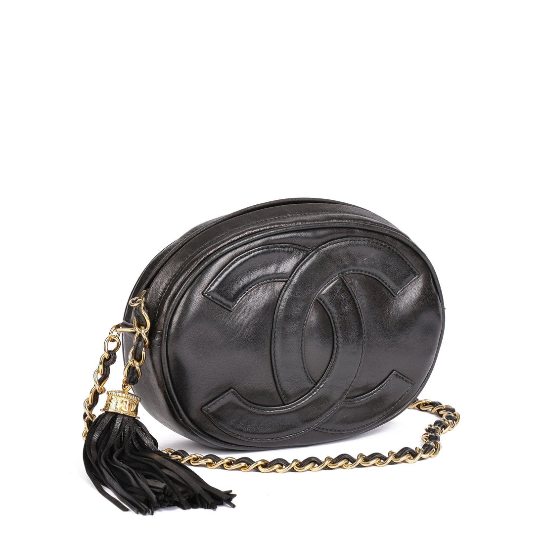 Chanel Black Lambskin Leather Vintage Round Fringe Timeless Shoulder BagThe exterior is in excellent condition...
