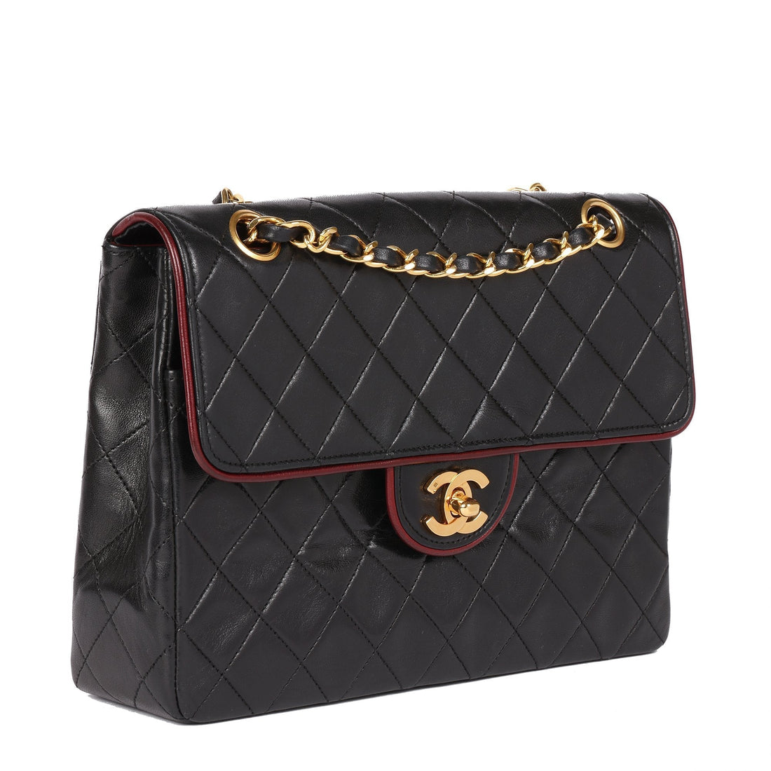 Chanel Black Quilted Lambskin Vintage Medium Classic Single Flap Bag with Red Trim Shoulder Bag