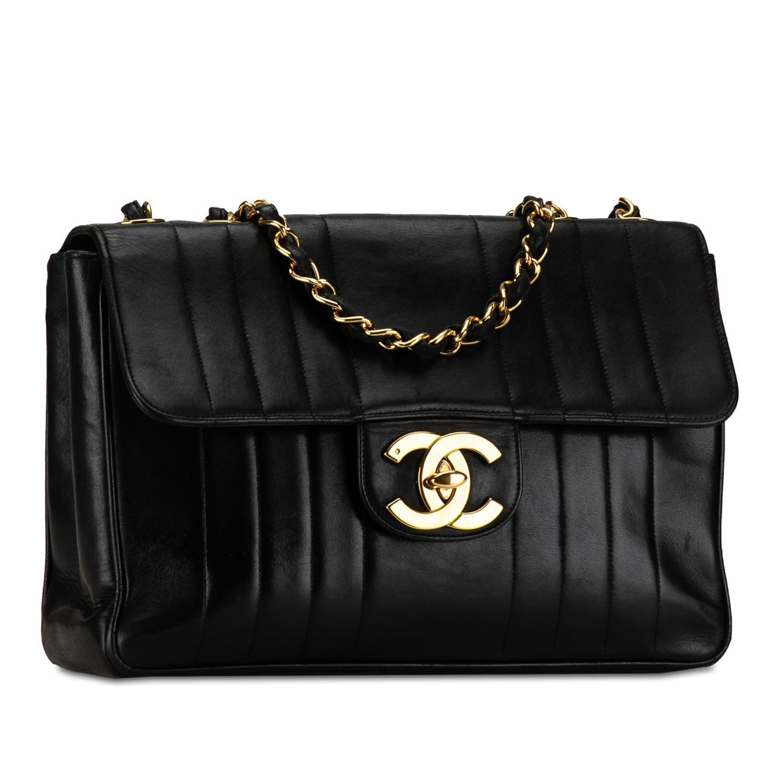 Chanel Jumbo Vertical Quilt Lambskin Single Flap Shoulder BagThis shoulder Bag features a straight quilted...