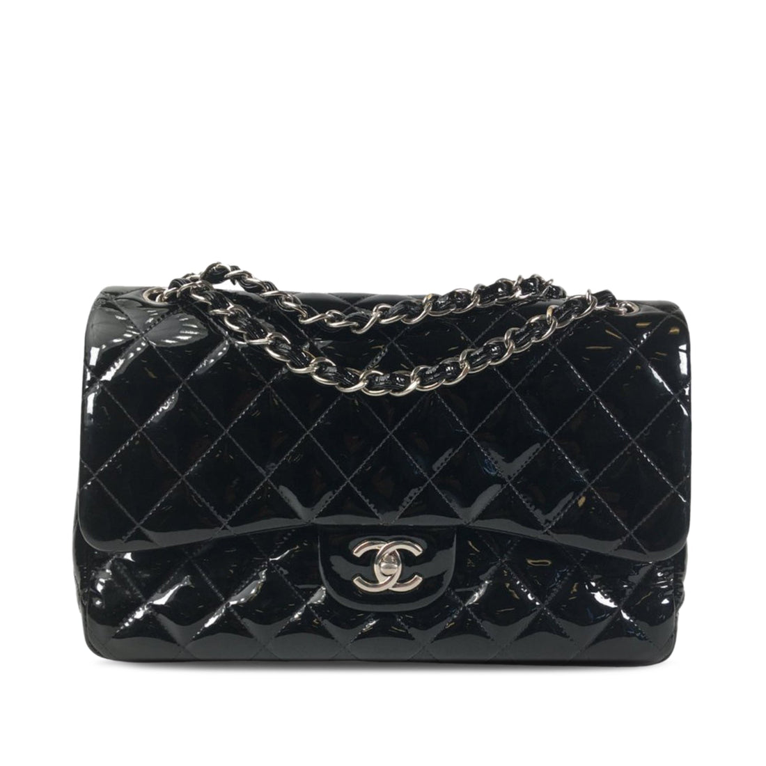 Chanel Jumbo Classic Patent Double Flap Shoulder BagThe Jumbo Classic Patent Double Flap features a...