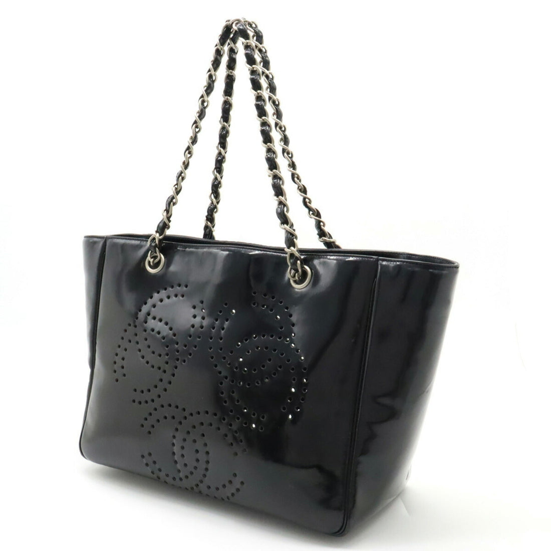 Chanel Coco Mark Triple Punching Chain Shoulder Bag Tote Enamel BlackBrand: ChanelGender: WomenColor: BlackMaterial: LeatherComes...